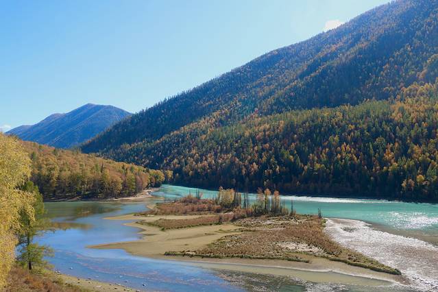 前往喀纳斯的途中经过布尔津的五彩滩,这里是观赏日落的最佳地点。