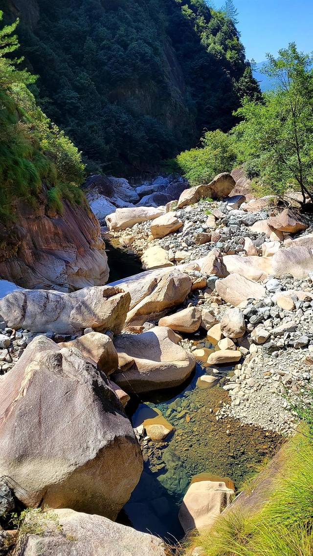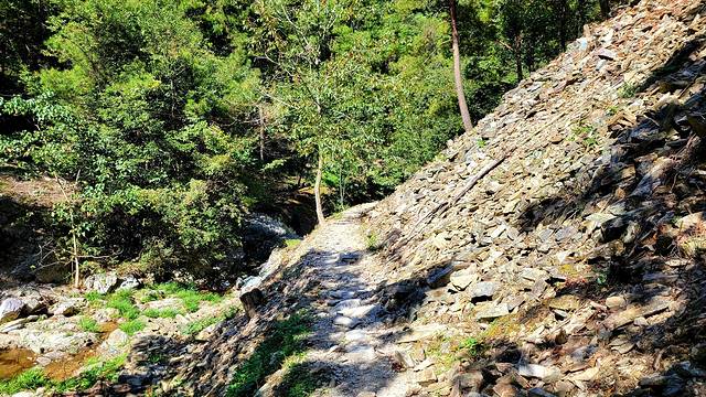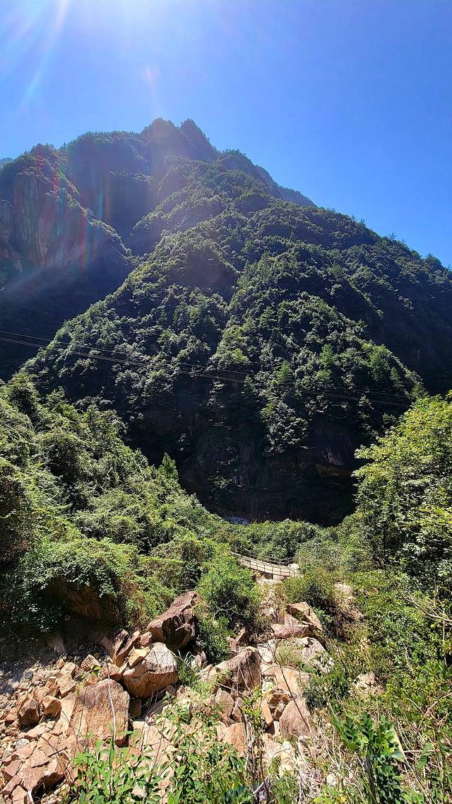 徽杭古道,我更愿称之为徽杭故道,古道风貌实际上就保留了几段,但真的很适合入门级的徒步运动,特别是正向穿越,一直上坡,很考验人的意志和毅力。路线并不长,还有许多供休息的客栈。好风景都在伏岭镇这边,峡谷栈道,清澈的小溪,样貌各异的巨石等,这里很适合带小孩子玩耍。从黄毛培到蓝天凹就没什么风景了,就是爬山。
