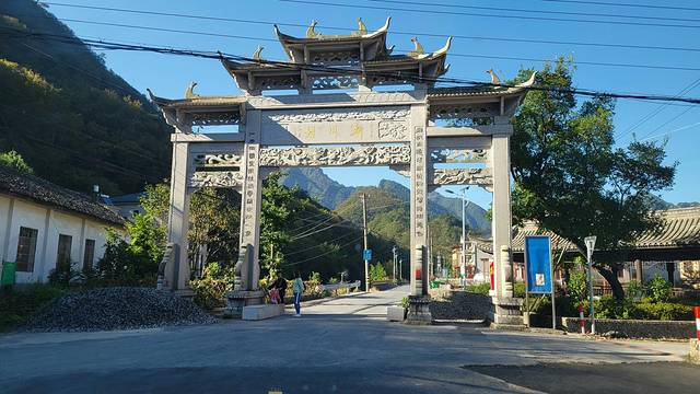 这是绩溪县伏岭镇入口,门脸比永来村的大太多了。