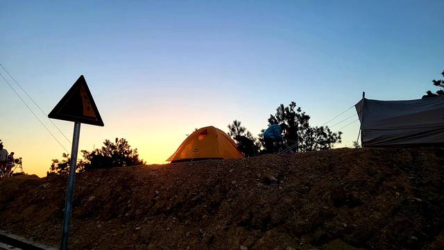 那必须要去看看啊,开车向上走盘山路差不多17公里,到了太子尖,发现路旁早已搭了很多帐篷,还有支锅造饭的。大人、孩子,热闹啊!