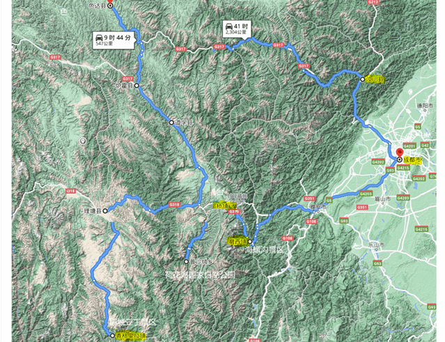 百度地图深坑,路过了道孚县,炉霍县,非常绕远的路线,开了10个小时的车。