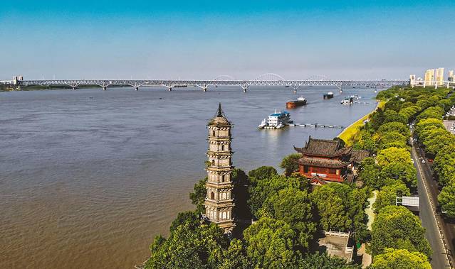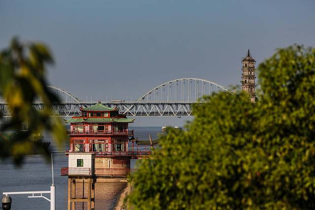 锁江楼位于长江之滨,九江市东北,傲然屹立,高耸蓝天,潇洒古朴,伟岸气昂,塔影锁江,风雅微妙。