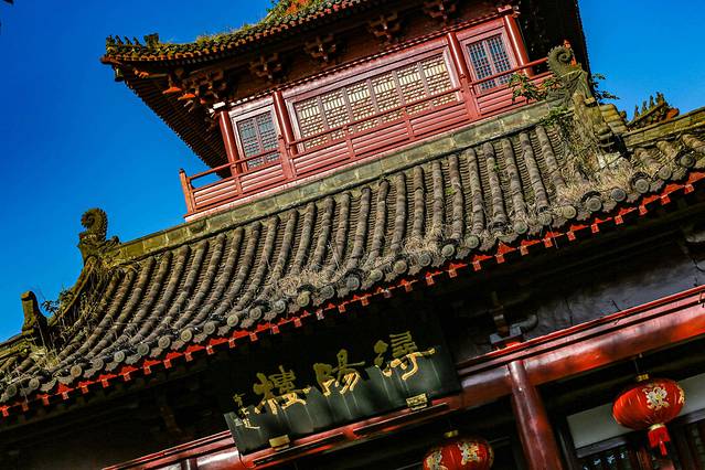 九江好座浔阳楼!古楼飞檐雕画,分外壮观,雕檐外高悬一面匾额,乃是宋代大文豪苏轼所写“浔阳楼”三字。据说当年苏轼本欲题“浔阳酒楼”四字,但不慎墨污“酒”字,于是将错就错,干脆去掉那个“楼”的限制定语“酒”字,气魄反而要大得多了。