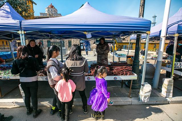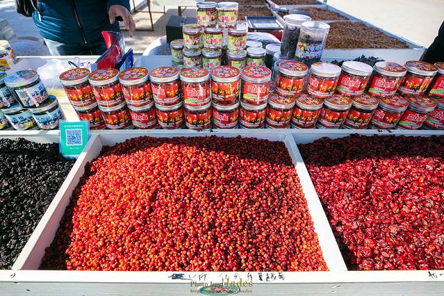 车站外面有很多土特产在售卖,价格便宜,品质也不错,蔓越莓、松子、牛肉干、牛轧糖都很受游客欢迎。因为临近蒙、俄,边境贸易便利,所以这里也可以买到不少进口货。