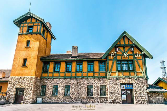 阿尔山市是座很美的小城。这里城区面积不大,主要以阿尔山火车站为中心,向两边延伸。面前这座阿尔山火车站建于1937年,是一幢东洋风格的低檐尖顶的两层日式建筑,现在已经被列入第七批全国重点文物保护单位。虽然已经有80多岁高龄,但这座火车站仍在使用之中。