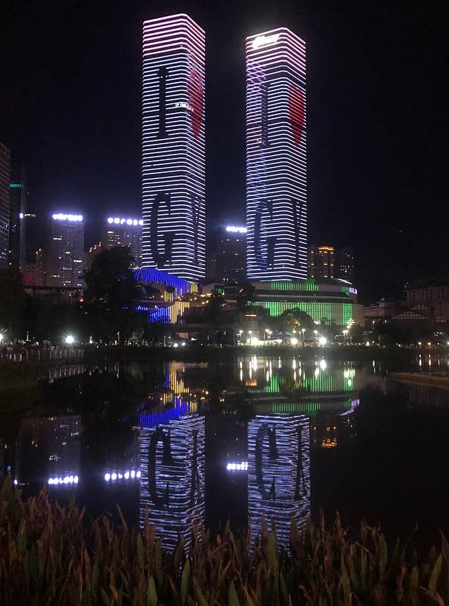 欣赏双子塔和白宫的最佳位置就是黄果园购物中心宜北町旁边的广场。黄果园购物中心吃的还挺多,逛累了可以选择一个靠窗的位置点餐。