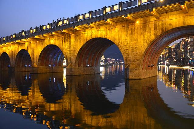 9点的火车12点到,核心景区在新大桥至祝圣桥之间全长1.5km。古城拥有2000年历史依河排布,是古代中原入黔要道。古城里的建筑基本上被商铺和客栈所占,虽然商业化很浓,但是依山傍水不失为远离喧嚣的好去处。下午可以登顶石屏山俯瞰夕阳下的古镇,古镇上有各色各样的贵州美食,也可以租借苗族服饰自拍。总的来说就是一个大型古镇步行街,晚上可以在新大桥上拍拍河两岸风景。
