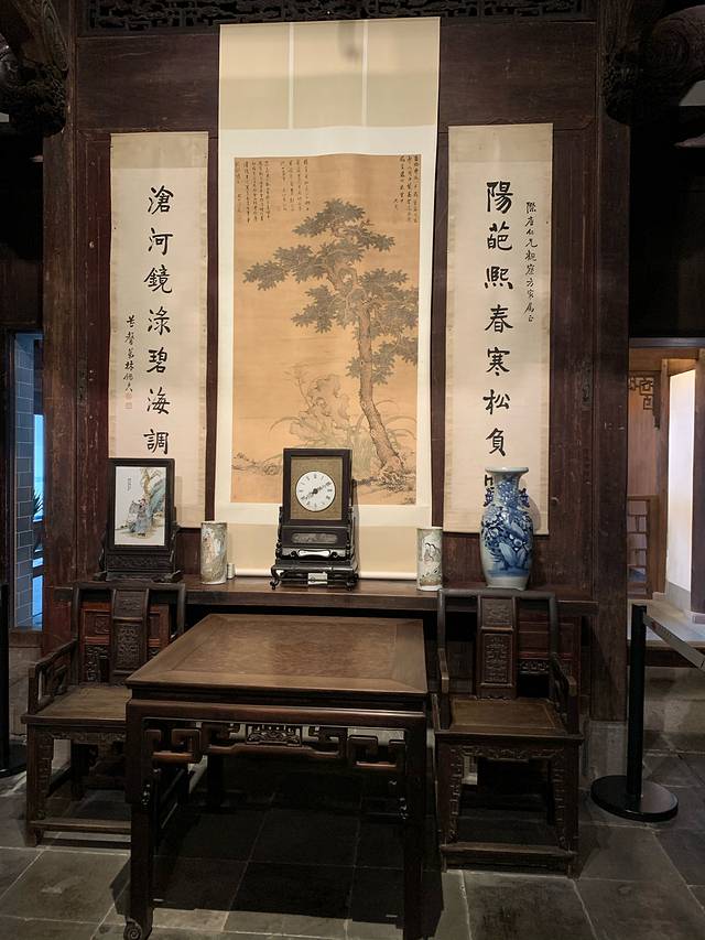 听志愿讲解者说这个是最正规的徽式建筑前厅的摆放!在参观李鸿章故居的时候也是这样的,而且右瓶上(面向)有帽就是男主人在家,真是令人瑟瑟发抖……