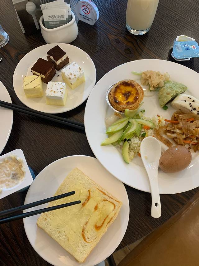 早餐时间6:30-9:30时间跨度好大,还可以,服务蛮好的,绿色茶饼好吃的!