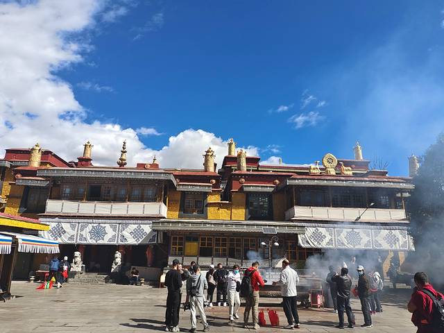 依然是睡醒先去阳台发发呆,看看天气,想想穿啥出门。扎基寺是拉萨唯一一个求财的地方,也不赶时间,坐着公交车一路看看路边的商铺,看看行人,去看看和其他寺庙有何不同。我本身也不太懂这些,就看着别人都是拎着酒,哈达等这些。跟着本心吧,点了把香,也不求大富大贵,就平安吧。跟着人群进去参观了,没有功德箱,但是哪哪塞得都是钱,有五六个僧人专门坐在钱堆里面数钱整理。很多陌生的神仙面孔,看到我认识的就拜拜,咱也不懂,就本着敬畏的心看看。之后出来直奔牦牛火锅,本来是一个人去吃的,点完餐之后,看朋友圈那天去羊湖认识的骑摩托的小哥哥在办托运准备回去了,当时他在用无人机拍羊湖,就加了微信想让他把图片发一下。问了一句要回去了吗,他说下午回,又问一句吃饭了吗,他说还没,我说我正要一个人吃火锅,要不你过来一起吃吧,然后就这样有了吃饭的伙伴。听他讲路上的故事,听他说路上的美景,真的,每一个人都是有趣的灵魂,听别人的故事有时候也能点醒自己。吃完饭就告别了,小哥哥送了我一串手串,送我一块青稞月饼。人与人之间其实就是很简单,很喜欢这种简单的信任。