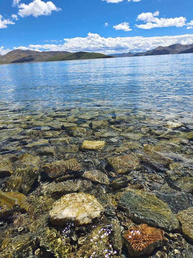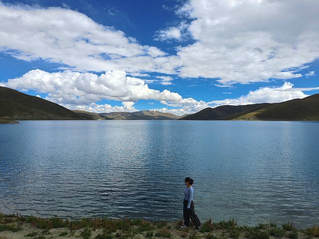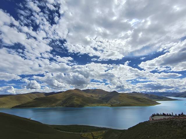 一直担心自己的高反还没有到来,第二天醒来一切都好,晚上睡得也挺香。于是携程报了羊湖半日游,12点集合。洗漱吃饭买零食,一切收拾好扫个电车就出门了,拉萨的共享电车真的不方便,是有规定停靠点的,总之那天我额外支付了15块钱。羊湖一路上都是美景,盘山路一直处于爬坡状态,最高点应该海拔4600,之后再慢慢下来,风景真的只有自己亲身去了才能感受到,我们一车有十几个人,大家一路上都在不停的“哇,哇,哇,,,”真的在城市很难见到这种纯净的美(虽然我这十八线也算不上城市),车也少,三三两两来形容,就好像今天只有你们去奔赴一样。羊湖的几个观景点,真的是让人不想离开,就那样坐着看着发呆都是幸福的。