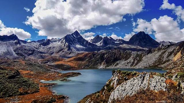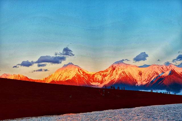冷嘎措位于四川省甘孜州帮木吉德村后山上不是旅游景点,可观云海、雪山,湖泊、星空、贡噶倒影以及日照金山.冷嘎措营地海拨4532米;对面的贡嘎雪山海拔7556米。