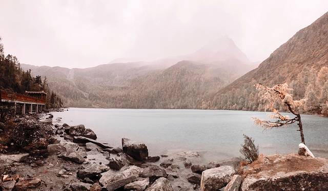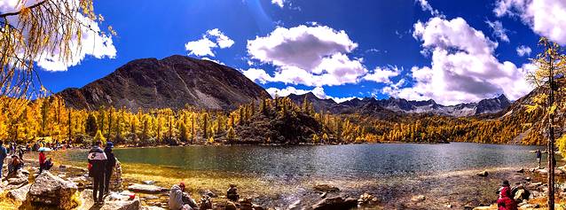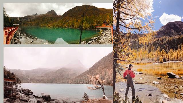 上山方式:到村上后或骑马或骑摩托车直接到湖边(当地村民铺了石子路)或徒步2个小时左右到达目的地甲依拉措,一路穿过彩色秋林来到湖边,但见雪山脚下,层峦叠嶂,落叶松间,一池秋水像一颗纯净的宝石,镶嵌在嶙峋陡峭的高山峡谷中,偎依在茂密的原始森林旁,蓝天、雪山、黄松、碧海,构成了一幅难得的天然画卷。