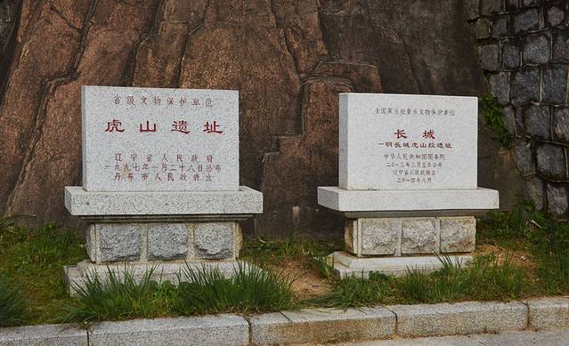 中午在宽甸服务区吃了午饭,下午2:00多到达虎山长城,这里是明代万里长城东端起点,很长时间以来人们都将万里长城的东端起点,误认为是“天下第一关”的山海关。其实早在《明史•兵志》中就曾有记载:“终明之世,边防慎重,东起鸭绿,西至嘉峪”。