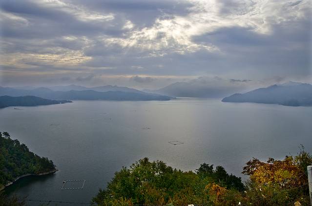 之后一路到达关门山景区,今天阴,中间太阳露出一下下,待我们下午三点到达景区时,太阳早不见了影子。关门山景区前两天就已达到三级红叶指数了,今天应该是最佳状态,国庆假期已过游人并不很多。关门山景区在本溪的赏秋胜地中名气最大,在我看来她最为漂亮的景色在于入口前的湖水加五彩山恋,可无奈没有阳光,再美的风景也是逊色,特别是秋的色彩。