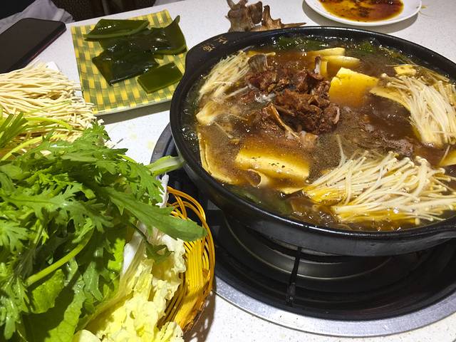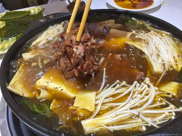 已下午1:00多了,赶紧在大众点评上找了个评分高的羊排火锅,味道不错。