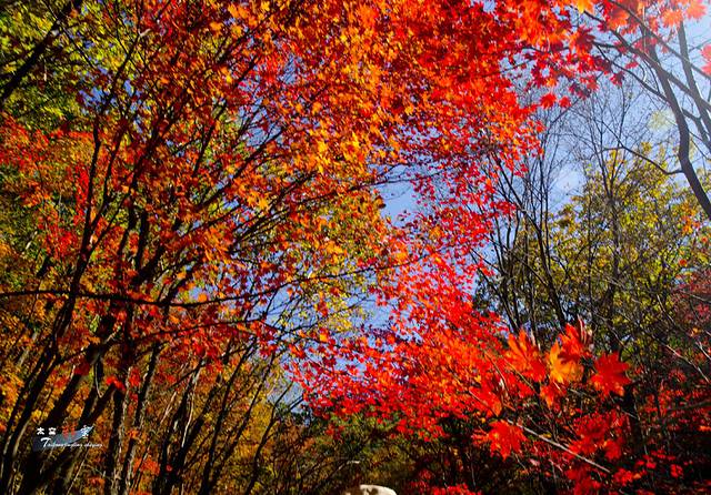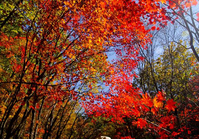 从国庆假期开始每天关注本溪的红叶指数发布,关注天气预报,最后于10月10日出发,在二级红的最后一天,在蓝天白云的陪伴下,收获了我最美的赏秋之行。