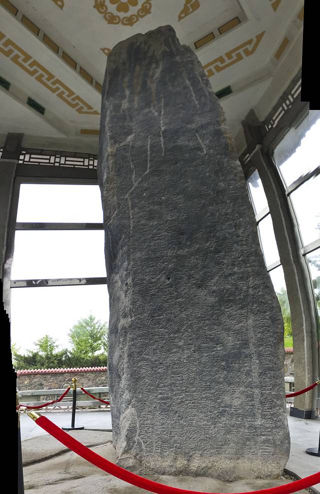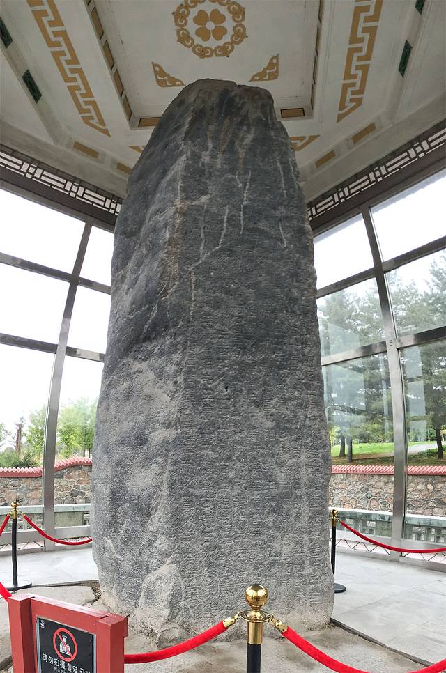 第2个景点是保护在玻璃亭子中的好太王碑, 高句丽第19代王谈德(374—413)的记功碑。由一块巨大的天然角砾凝灰岩石柱略加修琢而成,碑体呈方柱型,高6.39米,底宽在1.34—1.97米之间,四面环刻碑文。碑文涉及高句丽建国传说,好太王功绩及当时东北、朝鲜半岛与日本列岛倭人之间的关系等。