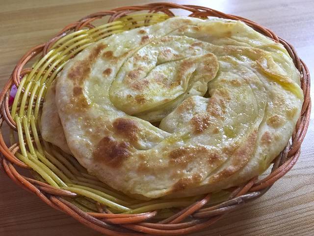 回酒店时见到附近另一条小路中有吊炉饼,是我攻略中不多的丹东特色美食之一,中午就吃它了,再加一碗豆腐汤。