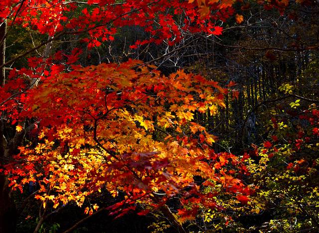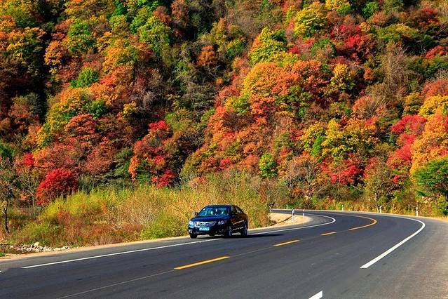 开始沿本桓公路(G506)向桓仁进发,从这里开始才真正进入枫叶大道,公路两侧延绵的大山,如今披上了五彩风衣,在阳光的照耀下绚丽无比,阔大恢宏,壮观美艳到极致,一路行进一路欣赏一路感叹,很快到达桓仁县城。自已只顾欣赏没停车拍照,下载两幅百度图片: