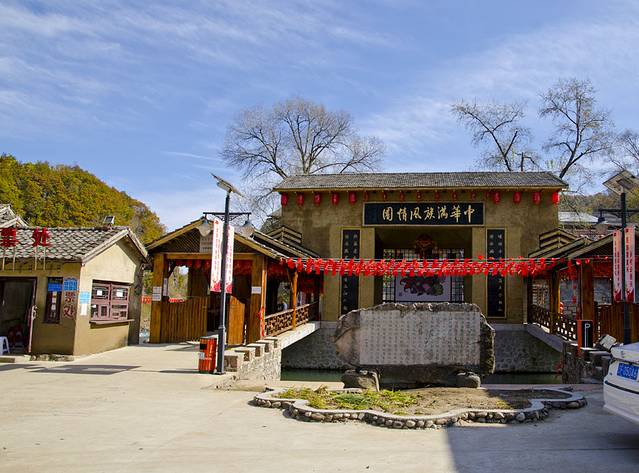 一路向丹东进发,公路两侧的山恋仍是红黄绿相间,在今天阳光的照耀下美美哒!我贪婪地欣赏着,虽然出行五六天了,每天红叶相伴,但还是看不够呀!路过一个新打造满族村落。