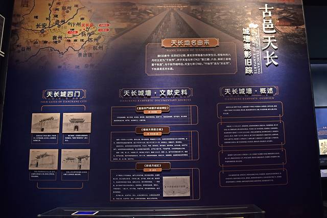 天长县城墙最初为土城,到了明代嘉靖年间,为了防御倭寇天长知县黄泰然请旨易土为砖,经过一年的建设,建成了高2丈,周长1046丈的城墙。天长城并不是正方形,而是根据地形由东至北,由西向南折略呈葫芦形,东、西、南、北建有四座城门楼,东为启文门,西为崇本门,南为长春门,北为永福门。嘉靖四十五年,继续扩建挖掘了护城河,在东西两门建造了月城。经过四百多年的岁月与战火,城墙城门严重损毁面目全非。