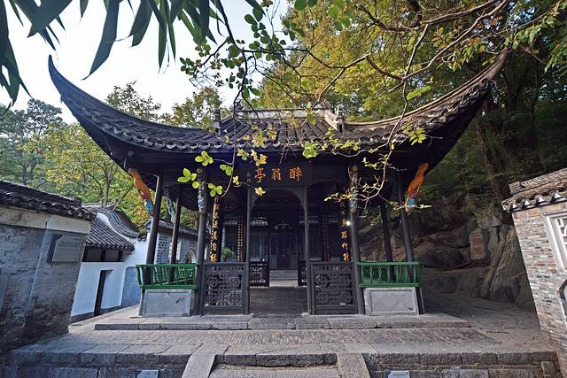 “山行六七里,渐闻水声潺潺而泻出于两峰之间者,酿泉也。峰回路转,有亭翼然临于泉上者,醉翁亭也。”醉翁亭与北京陶然亭、长沙爱晚亭、杭州湖心亭并称为“中国四大名亭”。为北宋时期宝应寺的智仙和尚建造,距今已有近千年的历史。有山,有林,有泉,有酒,有朋友,有故事。这样的环境现在看来也十分惬意,难怪太守陶醉于此,将山水之乐寓之于酒,与众同乐,写下千古名篇。
