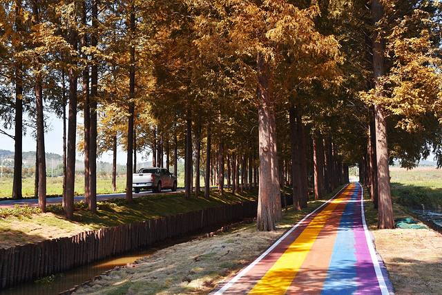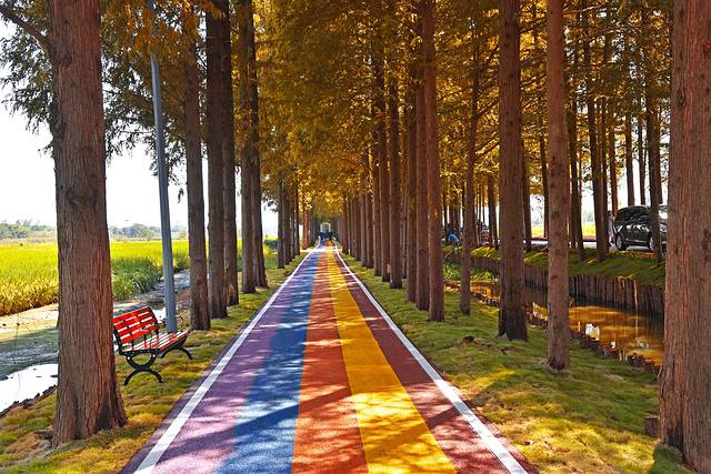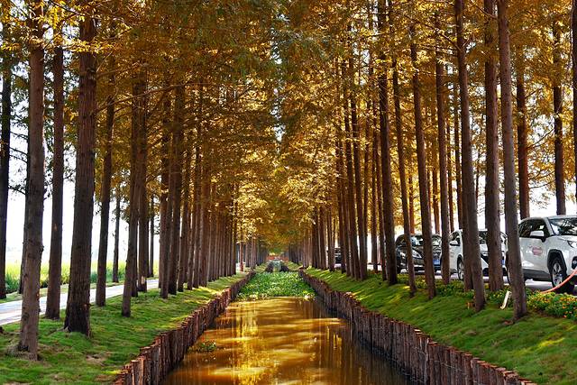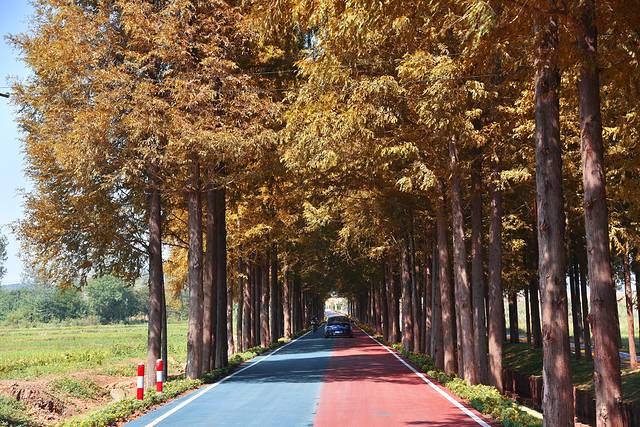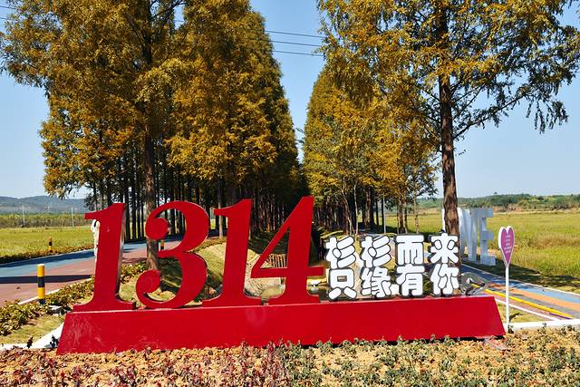 全椒县有一条自驾游爱好者特别喜欢的网红公路,路两边上万棵水杉排列成三排,中间一条车道一条步道,涂成五彩的颜色,延绵数公里,因此得名“十里长杉”。“十里水杉”分南北两段,北段1314米恰好位于江淮岭脊线全椒慢岭段(椒岭风景线)。1314谐音寓意一生一世,因此被称为“爱情大道”。