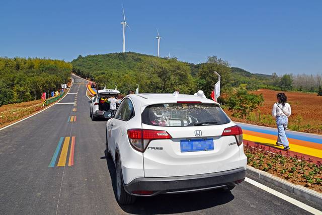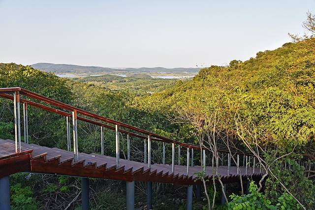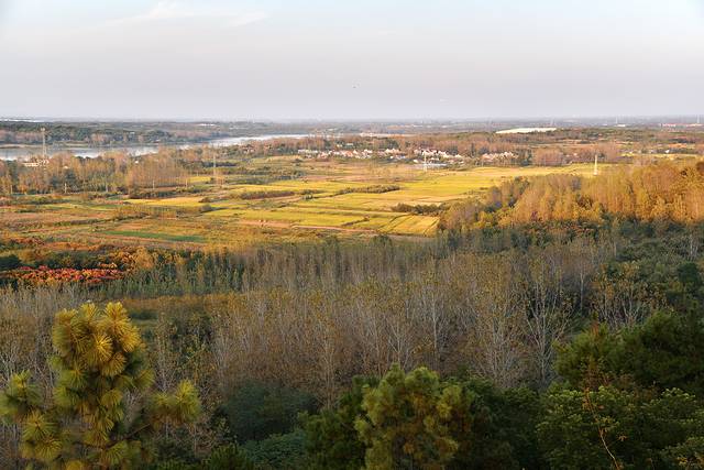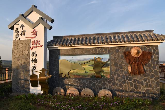 告别皖东银杏王,继续自驾来安之旅。为了打造江淮分水岭自驾线路,在路中央刷上了三种色彩的分割线,每两县交界和自驾线入口设立了标牌,还在路边建造了观景台,让自驾的游客短暂休息的同时还能更安全方便地看看路上的风景。在来安岭上观景台,我们停下车,太阳渐渐降低了,在山林田陌间洒下暖色的光,观景台上乡愁的图案和字样十分应景,勾起了路过游客的乡野情怀,想去当地的村子里走一走,看一看。