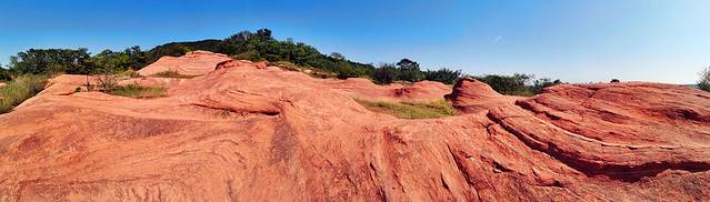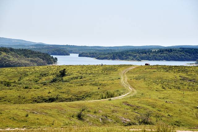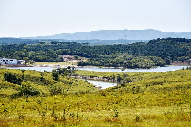 离开大横山,继续自驾江淮分水岭,穿过一座座村庄,一片片农田,爬上起伏的山坡,眼前的视野逐渐变得开阔起来,树木越来越稀少,也不见开垦过的田地,山坡上是自然生长的草地,我们来到了黄寨草场。