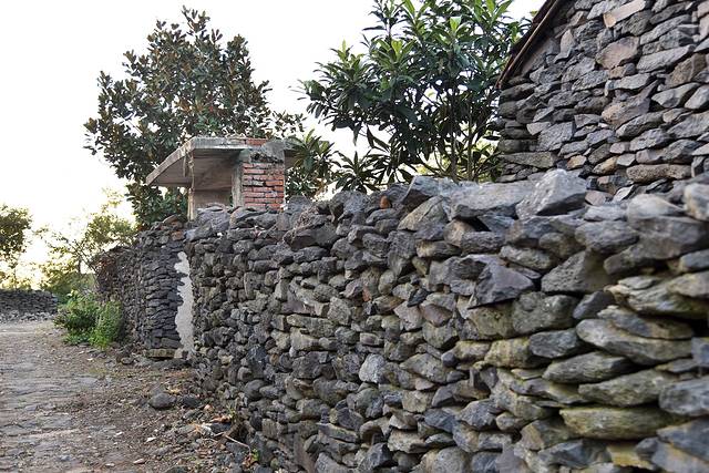 在来安县城以北大概30公里,与江苏淮安交界的地方,有一个村落名叫界牌村,特别之处并不是两县交界的地理位置,而是村里的老房子。这些老房子建于上世纪60、70年代,37座房子有35座就地取材当地的玄武岩干砌而成。院墙、房屋呈现玄武岩灰黑的本色,整齐、粗糙的质感显得古朴而沧桑。这些民居已申请为历史建筑,成为江淮分水岭自驾线路上的一处旅游打卡点。