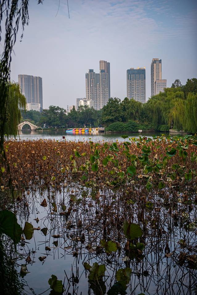 与好友谈笑间来到包河区包公园,在一片梧桐环绕之中,它静静地矗立在合肥包河区芜湖路旁。由园区东侧进入,左边便是名胜之一清风阁,右边则是包公墓园,而正前方望去,一片秋意盎然,明黄色的树叶掩映着碧波荡漾的湖面。下午时分,湖边有不少人,或晨练,或漫步于湖边道路,令我不由自主地想到一个词:岁月静好。