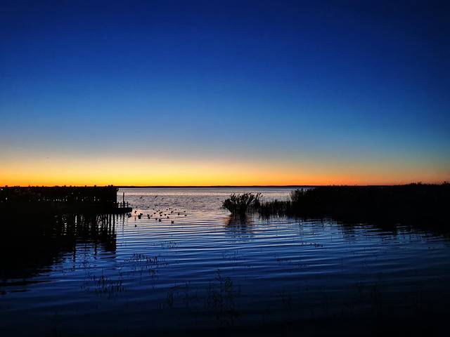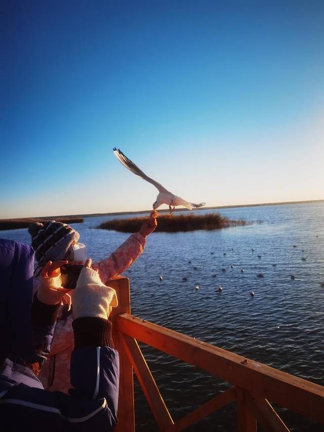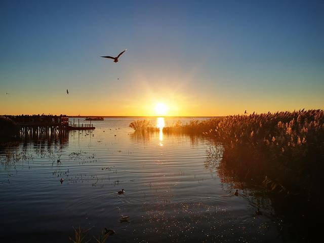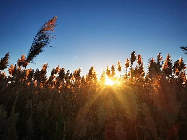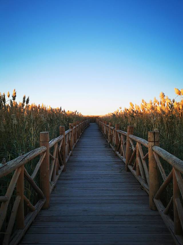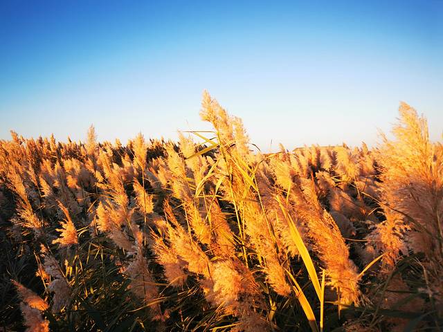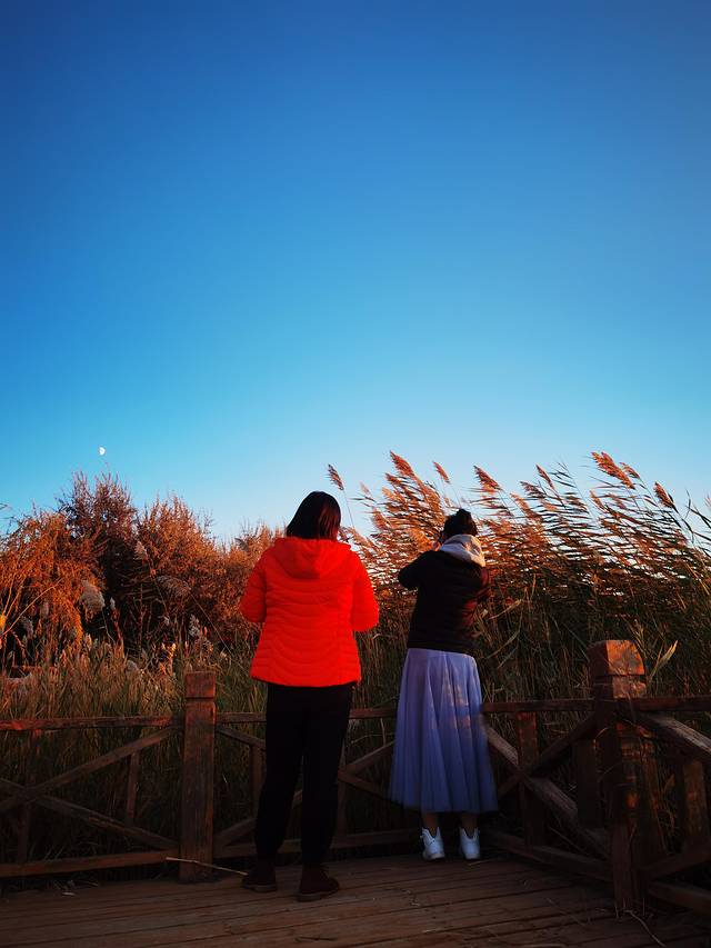 凌晨5:30出发,4点多就起床了。到了居延海门口那人是真的多,感觉整个镇上的人都到这里来了,进门就冲锋去排队坐车,到了湖边发现观景台已经是人满为患,只好找别的机会。小伙伴找了个就近的栈道位置,我不死心,沿着栈道一路向前,相信希望就在前方。果然,经过一个相对人少一点的观景台后,我继续向前,下一个观景台人就寥寥无几了。赶紧占好机位。7:28太阳如期升起。完成任务后,拍了一路金色的芦苇,我们本打算排队坐景交车。在我的唆使下,两个小伙伴跟我一起走上了向着敖包方向的栈道。也就15分钟左右,就走到了景区门口。还把冻得够呛的手脚都走暖了。早知道这么近,进来时就不坐景交车了。不过,千金难买早知道呀!何况乌漆嘛黑的情况下走栈道,也很有可能走错路。好吧,第一次来看日出还是乖乖坐景交车比较好!当然,如果是白天进景区,那景交车的15元就真的大可不必浪费了。