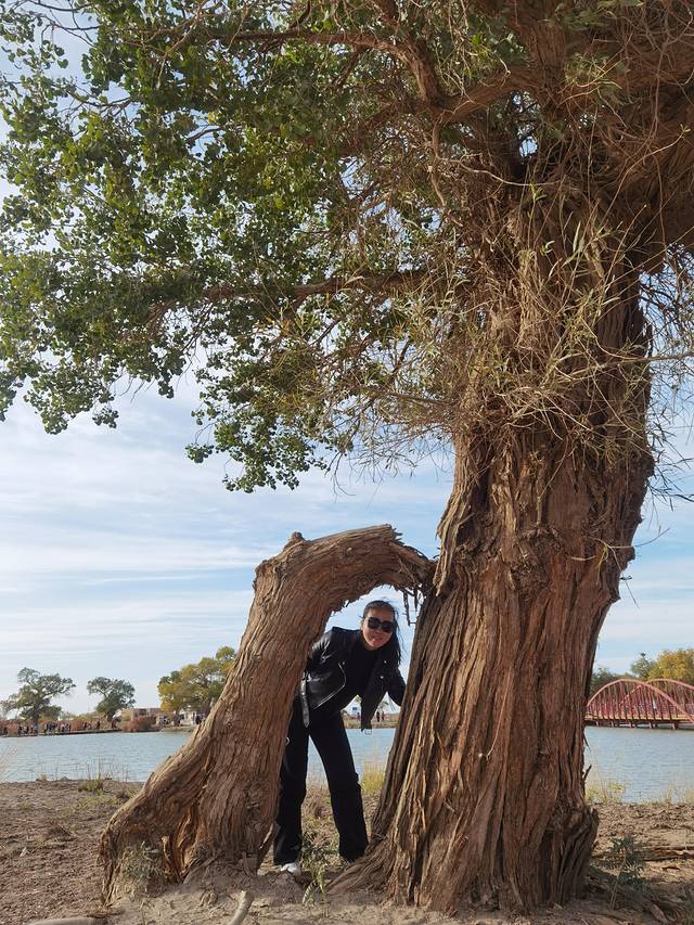 想着既然来了就都去看看,我们买了一到八道桥的全票。一天下来,胡杨林看了个饱,下午正好到八道桥沙丘上放松一下,骑个骆驼溜了一圈,再爬上沙丘换个景看看。想着没有滑沙就自助一下,兜着裙子想滑下沙丘,结果,我真的高估了自己,除了一道深深的沟壑,我是全程只能靠脚,卡在沙堆里,脚不扒我不动,社死现场啊!把两个损友笑了个半死!