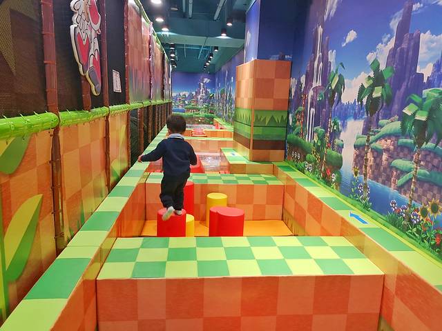 其中立体游乐设施索尼克绿色丘陵最受小朋友欢迎了!