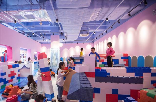 色彩缤纷的积木随着孩子的想象随意变幻。