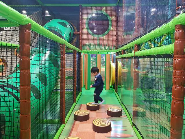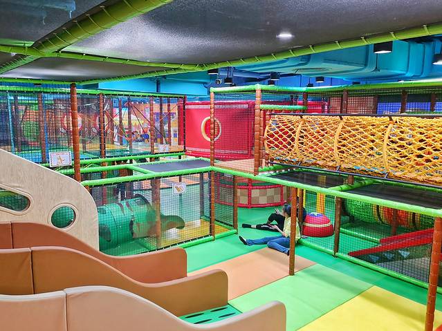 这里设有滑梯、吊环、爬梯、高低差跑道等,