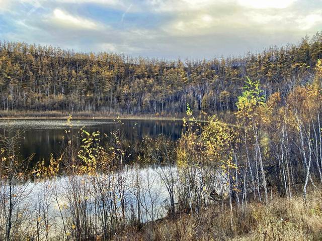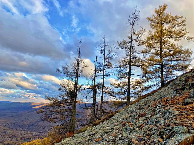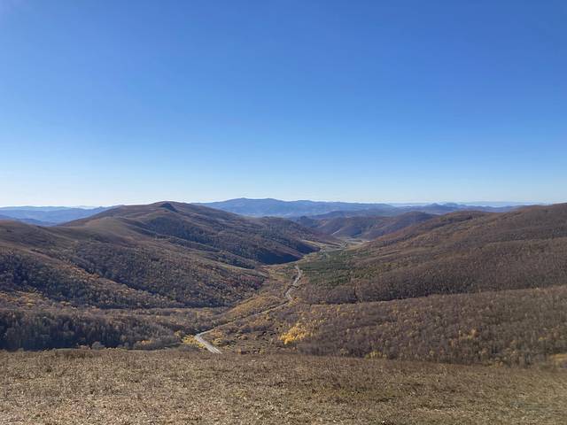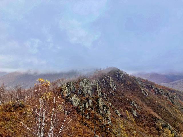 起初就是最高处,相隔很近有两个观景台,可观赏山脊的两个面,顺土路也可深入,遗憾的是满山的白桦树也基本掉光了,只剩下针叶林落叶较晚。
