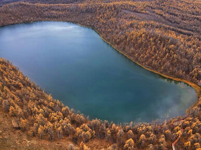天池服务区北侧不远处,单独的大巴线路。湖泊位于山顶,高度和驼峰岭爬的差不多,是火山喷出物在周边形成围墙,多年积水而成。湖边只有一处观景台,但由于视角比较低,看起来就是个普通的湖,航拍某些角度略像个心形,下山的路段路旁边的黄针叶林还有不少叶子,出片很漂亮。