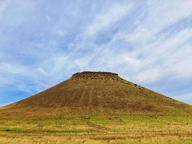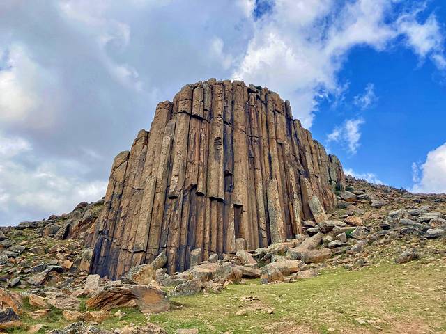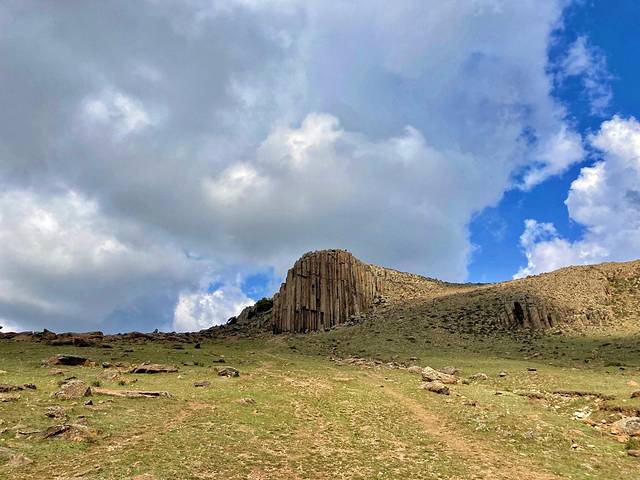 登上过《中国家地理》的封面。这是一个野景点,位于太仆寺旗西侧大约10分钟车程距离,路上会经过一大片向日葵地。村子里的土路可直通到山脚下,但极其难走只有越野车和大型SUV能通过。我国七大火山岩石柱群之一,主山体就是由一根一根垂直的石柱组成,是火山喷发凝结而成,周围是比较辽阔的草原和庄稼地,山峰可上,绕一周大约1小时,山背后还有一些比较小规模的石柱群,但形状不是很明显,偶尔可以遇到放牧的牛马群。