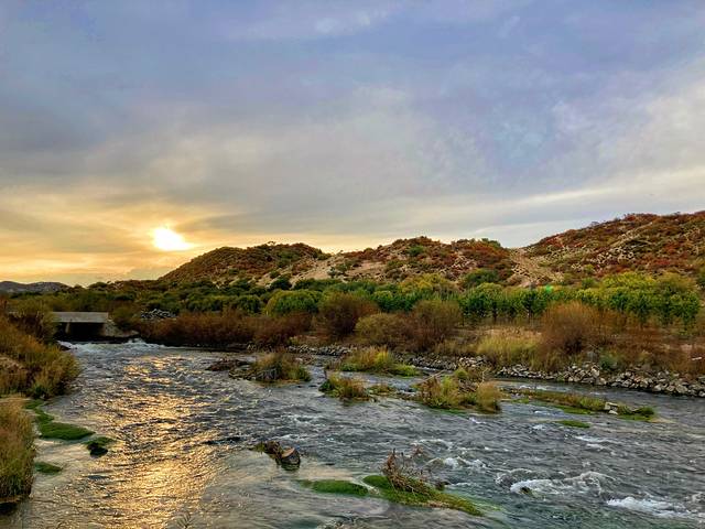 以经棚方向可为起点可分为几段,经山线下排头营子前方大约100m这个位置,在S型弯道处可以看到整个峡谷河道的入口,景色十分漂亮。