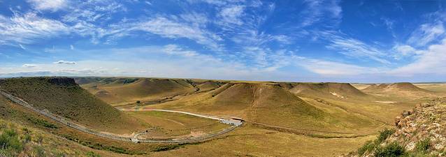 西乌珠穆沁旗至霍林郭勒,属于赶路的中途,霍林郭勒是去往阿尔山方向最后一个比较大的城市了,周围属于乌拉盖草原,这里因为拍摄了狼图腾而有名。景点集中在霍林郭勒的北偏西方向,以乌拉盖九曲湾为核,。途径可汗山和野狼谷,野狼谷其实都是人工饲养的。布林泉在S101的乌拉盖管理区北侧,属于绕路,往更远方向走S303可以去往边境,那也是通向阿尔山的一条道路。