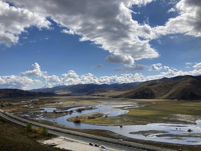 附近最有名的景点之一,去往九曲湾的路上会经过一个湖,这是九曲湾下游蓄水的湖泊,算是一个免费的小景点。从九曲湾景区处,也可远眺这里。
