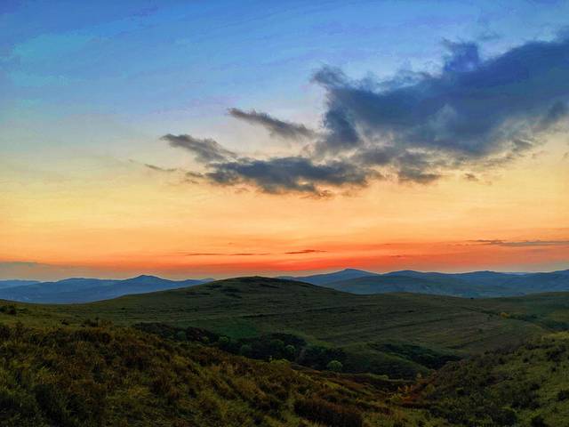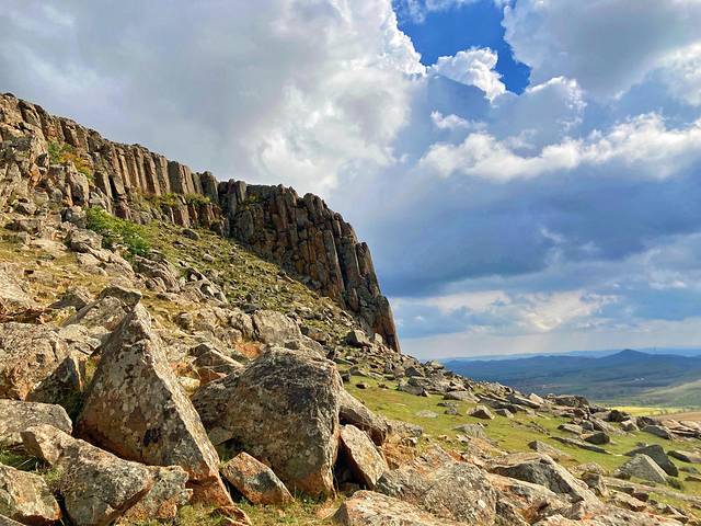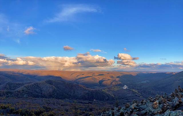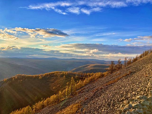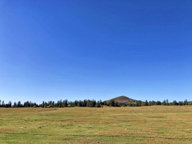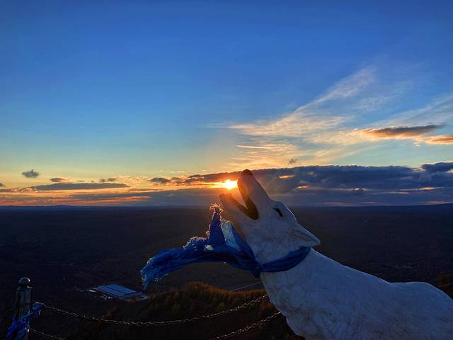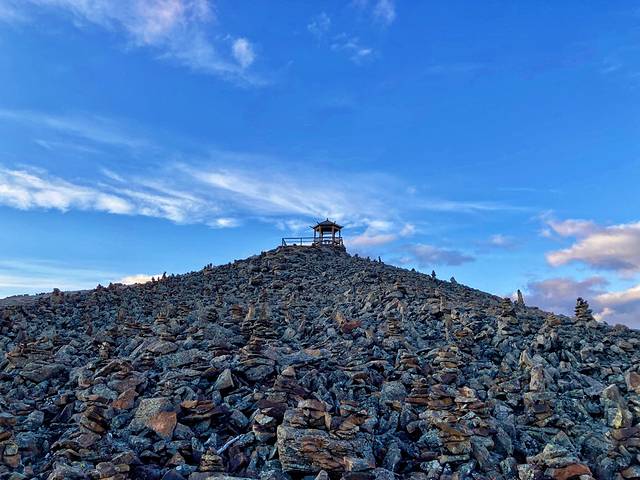 离奥伦布坎不远,白狼镇的旁边,这座山和周围其他的不太一样,山顶布满了大量的碎石,山脚可以开车到半山腰,山路一车宽不过是单行,也可以坐景区的车上去。到山顶需要爬几百节台阶,但比起那些有名的五岳之类的少多了,登顶后,左手是一个观景台,右手方向三个地点依次是亭子、狼雕塑、兴安岭最高处。登高远眺的的风景不错,云朵从山脊掠过,此处也是可以一个看日落的地点。