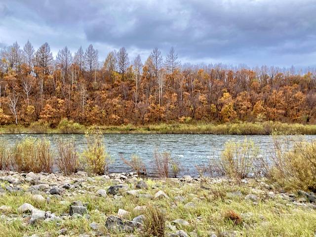 从阿尔山森林公园至柴河月亮湾小镇,完成森林公园剩下的景点。从森林公园东门的柴河服务区往后,是网红蘑阿公路X407,但因为没有秋叶的加持,老实说景色较为一般,这里只有9月中上旬或者有积雪的时候最为漂亮,在快到蘑菇气镇距离河边较近的最后一段,颇有西北胡杨林的风格。这条乡路的路况不好,有2/3都是比较破,时不时的有大坑,路宽仅两车,有的路段路旁的红柳还会再占半条道,而且会有牛羊出没。这条路只有接近月亮湾小镇和蘑菇气的地方才有信号,其余大部分地段都是没信号的。