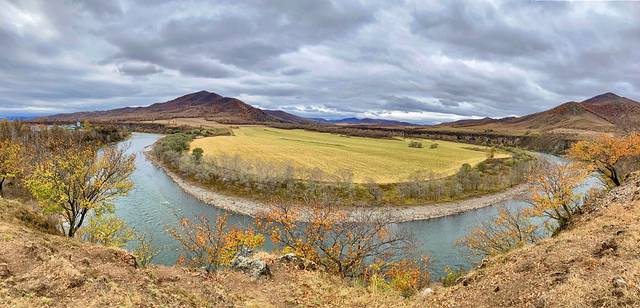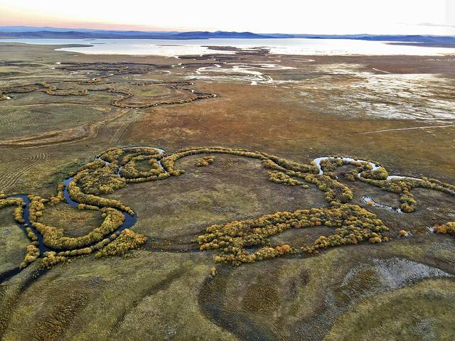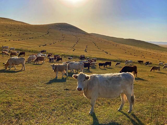 在西乌旗西南方向,距离不算很远,但从蒙古汗城的路口开始拐向乡路需要开1个小时,因为这条路比较破大坑比较多,而且还有很多超宽的运草垛的拖拉机。这个时节已经不售票了,售票的对面是蒙古包民宿,后面有条路可以通向山包,山顶能够俯瞰草原上的河湾,这里的河湾比九曲湾有过之而无不及,山脚下有条土路可以通向草原深处,并会穿越河道,草原上有不少牛马群,这里是欣赏日落的绝佳地点。游牧部落其实只是初始的区域,这个地区实际为古日格斯台国家级自然保护区,顺着路往前开可以到达半拉山和白桦林,但半路我们从土路深入草原,是往深处乡村的道路,在原始的草原上奔放。这个区域充满了原生态的风景,可以花上一整天时间。