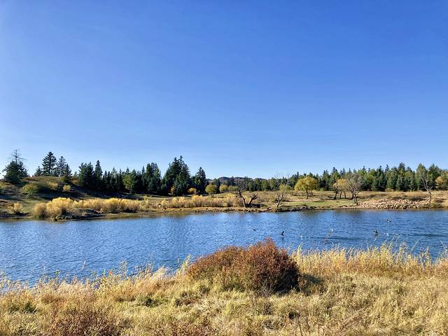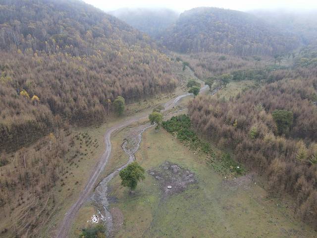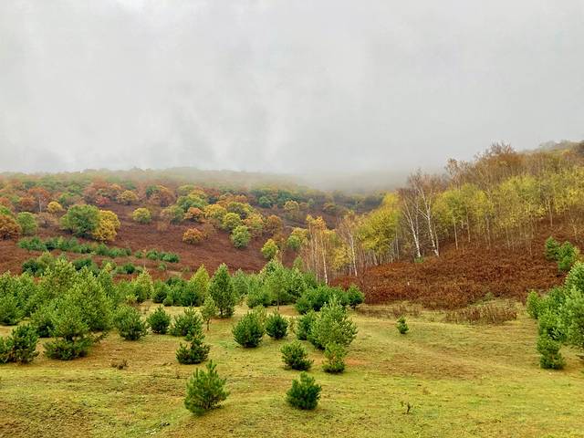 之后有岔路去往黑山狩猎场,有路牌,还是只有一车宽的土路,狩猎场进不去,但门前区域的山地灌木景色很漂亮,同时这里也紧挨着河边。