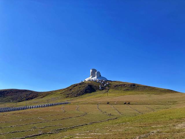 距离霍林郭勒市非常近的一个人工景点,也是去往九曲湾方向的途中。得名于山丘上建造的巨大可汗雕像,山下建了类似兵马俑的士兵方阵,虽然人工痕迹严重,不过一眼看去略为壮观,该景点免费,为爬山一周的环线路线,快到山顶有许多小的可汗塑像,介绍历史,顶山风光一般。总体需要耗时1-2小时。