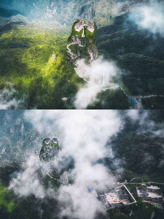 🔻红云金顶:蘑菇石左手网红景点,小云觉得比蘑菇石更美(右边是制高点“老金顶”)