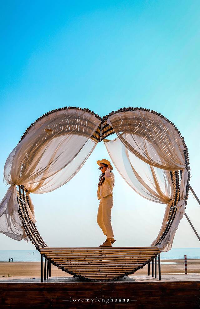 刚来到侨港海滩就发现一处特别适合拍照的地方,哥特式的尖顶,法式的圆顶,还有古朴的教堂,与远处的碧海蓝天,交相辉应,置身其中,仿佛来到了浪漫的爱情海!